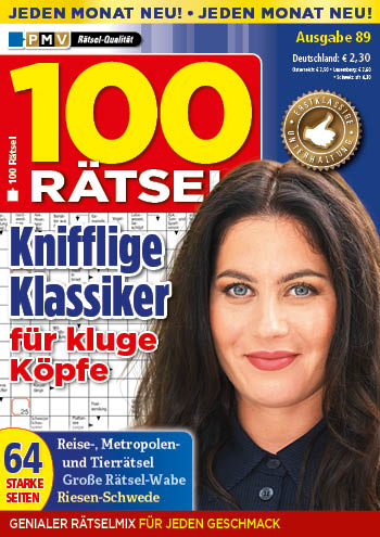 100 Rätsel bietet, wie der Name verspricht, auf über 50 Seiten eine breite Abwechslung aus unseren schönsten Rätseln. Rätseln Sie sich durch dieses Heft und entdecken Sie die Lieblinge unserer Redaktion.