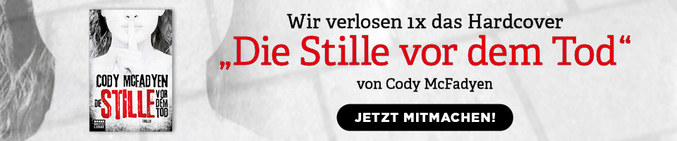Verlost wird eine Ausgabe von Cody McFadyens Hardcover „Die Stille vor dem Tod“. Ein Gewinn kann nicht umgetauscht und nicht in bar ausgezahlt werden.