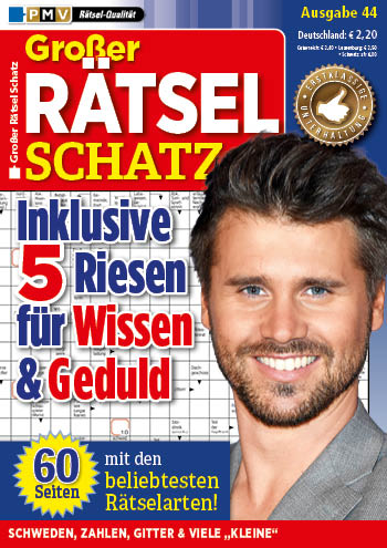Großer Rätsel Schatz ist eine wahre Schatzkiste an vielerlei Rätselarten und variabler Schwierigkeit. Auf über 60 Rätselseiten finden Sie Rätsel-Klassiker und Innovationen.