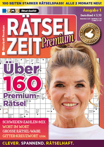 Rätselzeit Premium liefert Ihnen Rätselgenuss auf hohem Niveau: abwechslungsreiche Aufgaben, steigender Knobelanspruch und jede Menge Aha-Momente. Ideal für alle, die gern mitdenken, abschalten und sich 96 Seiten lang neuen Herausforderungen stellen möchten.