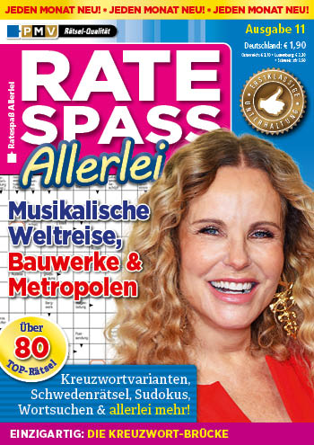 Im Kreuzwort Ratespaß steht Unterhaltung an erster Stelle. Auf über 60 Seiten finden Sie mehrfarbige Rätsel, die Sie immer wieder aufs neue herausfordern.