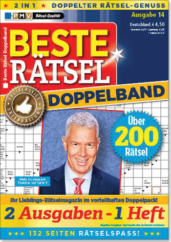 Erleben Sie zweifachen Rätselspaß mit dem Beste Rätsel Doppelband. Das beliebte PMV-Heft „Beste Rätsel“ beinhaltet einen bunten Mix unserer Rätselarten. Im Doppelband finden Sie zwei Hefte mit insgesamt über 200 Kopfnüssen in nur einer Ausgabe zusammengefasst.