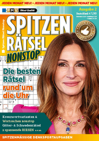 Erste Sahne Rätsel besticht durch seine inhaltliche und formale Vielfalt, ohne den Anspruch an die Präsenz von Kreuzworträtseln zu vernachlässigen. Auf knapp 60 Seiten können Sie unser breites Rätsel-Portfolio genießen.